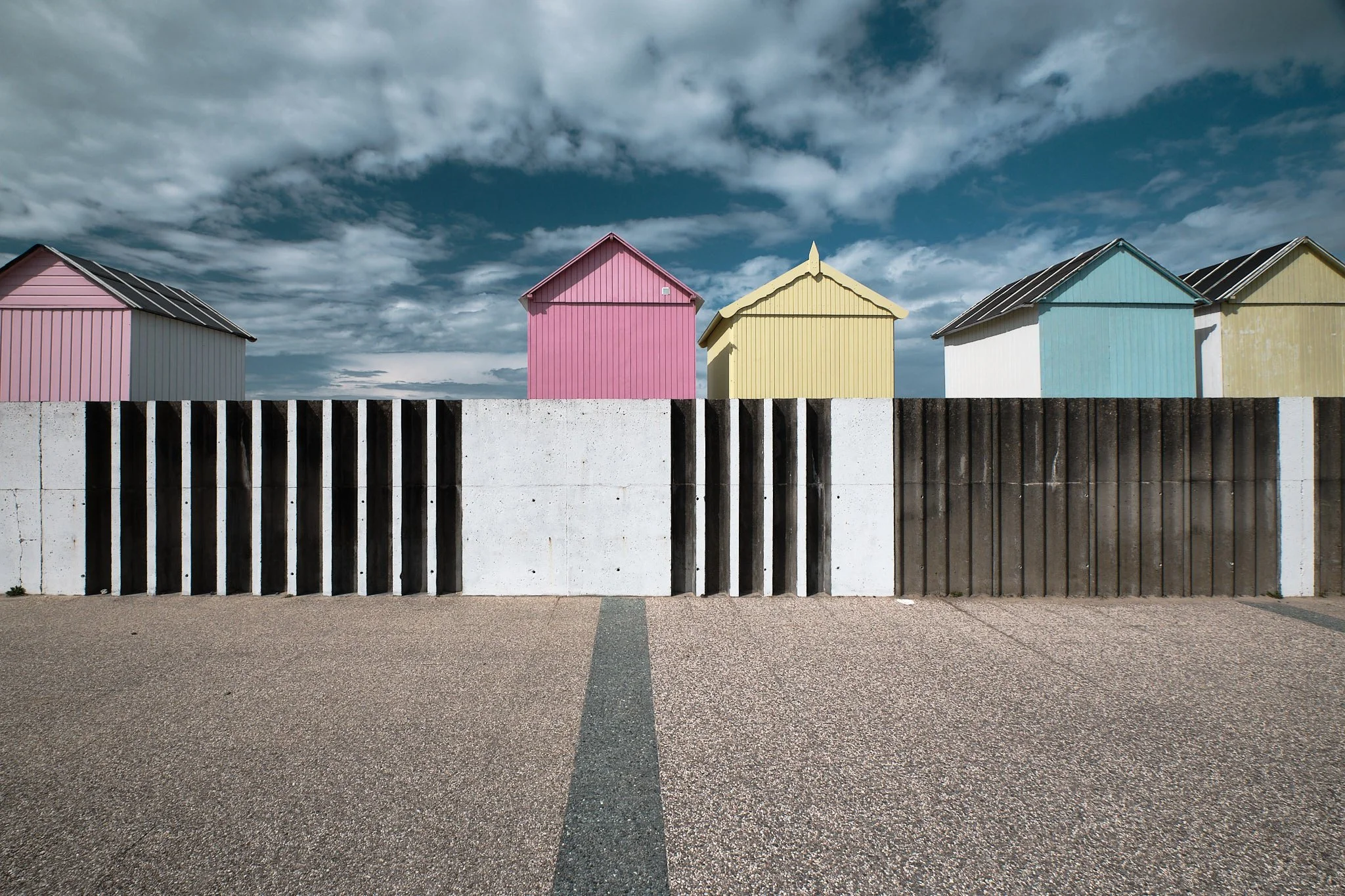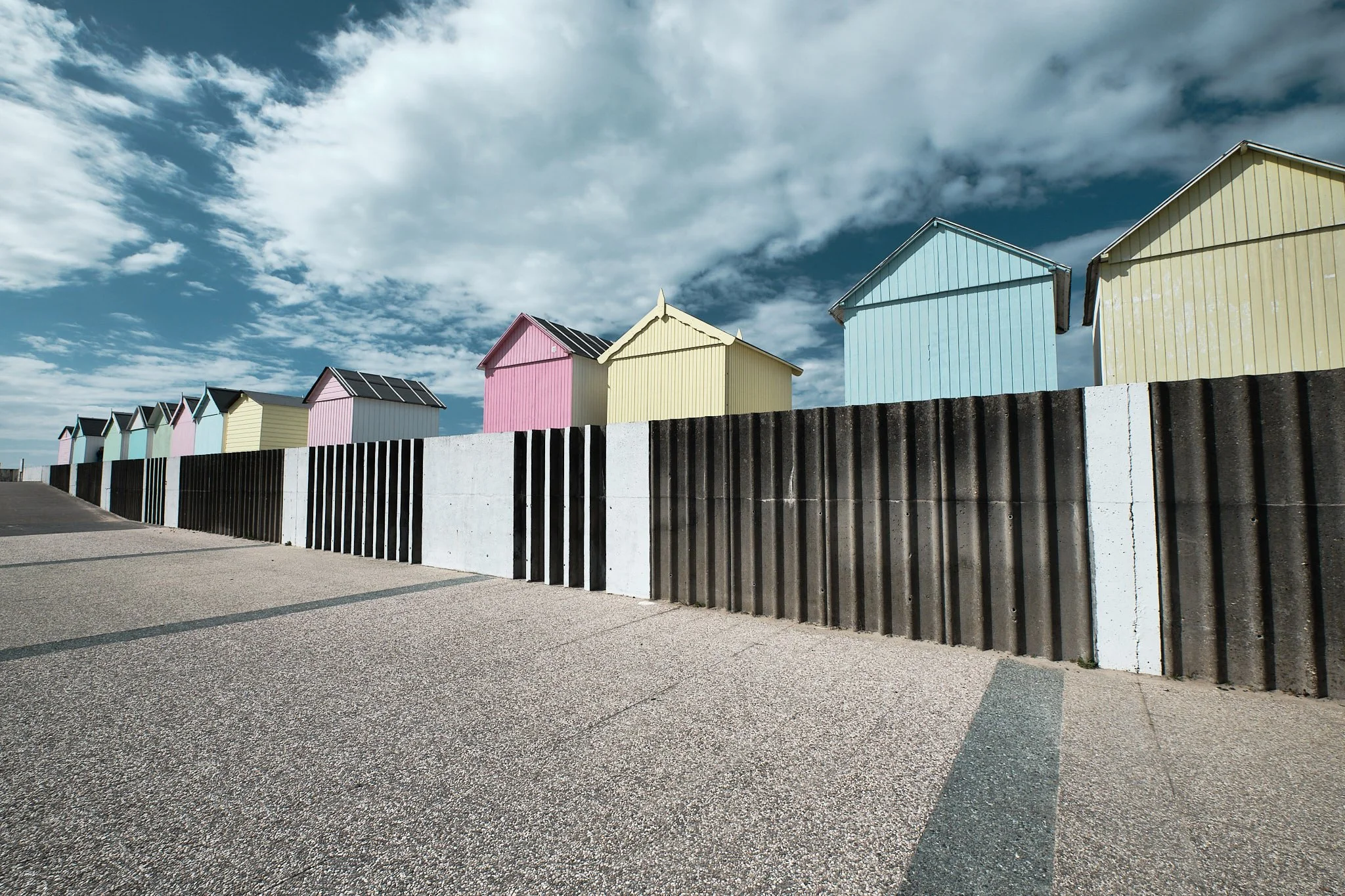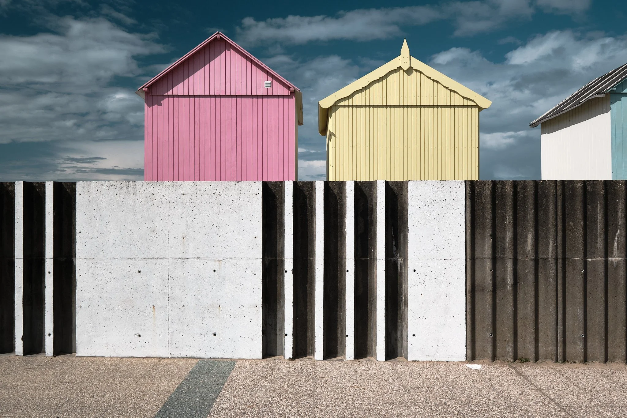 Printemps 2024, la promenade de la plage de #saintaubinsurmer déploie ses jolies cabines dans une atmosphère graphique à souhait. Le gris du béton nature côtoie le blanc de la peinture et le bois peint des cabines distille des nuances estivales. Irrésistibles symboles de la vie qui reprend doucement sur le front de mer, des envies de couleurs, de soleil, de bain de mer, mélangeant lignes horizontales, verticales et lignes de fuites.