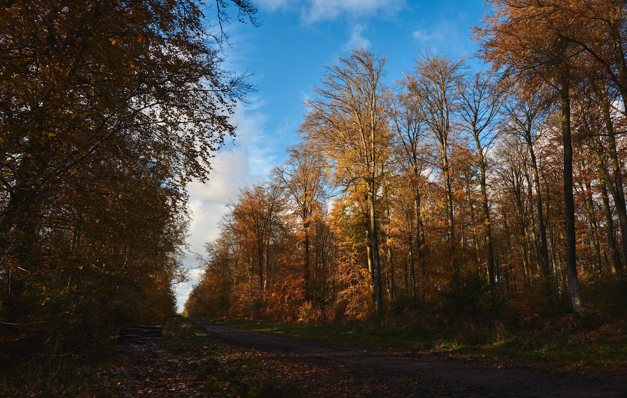 Forêt d’Eawy. Plus que quelques dizaines de minutes pour profiter des rayons du soleil qui colorent et saturent les sous-bois de l’automne.